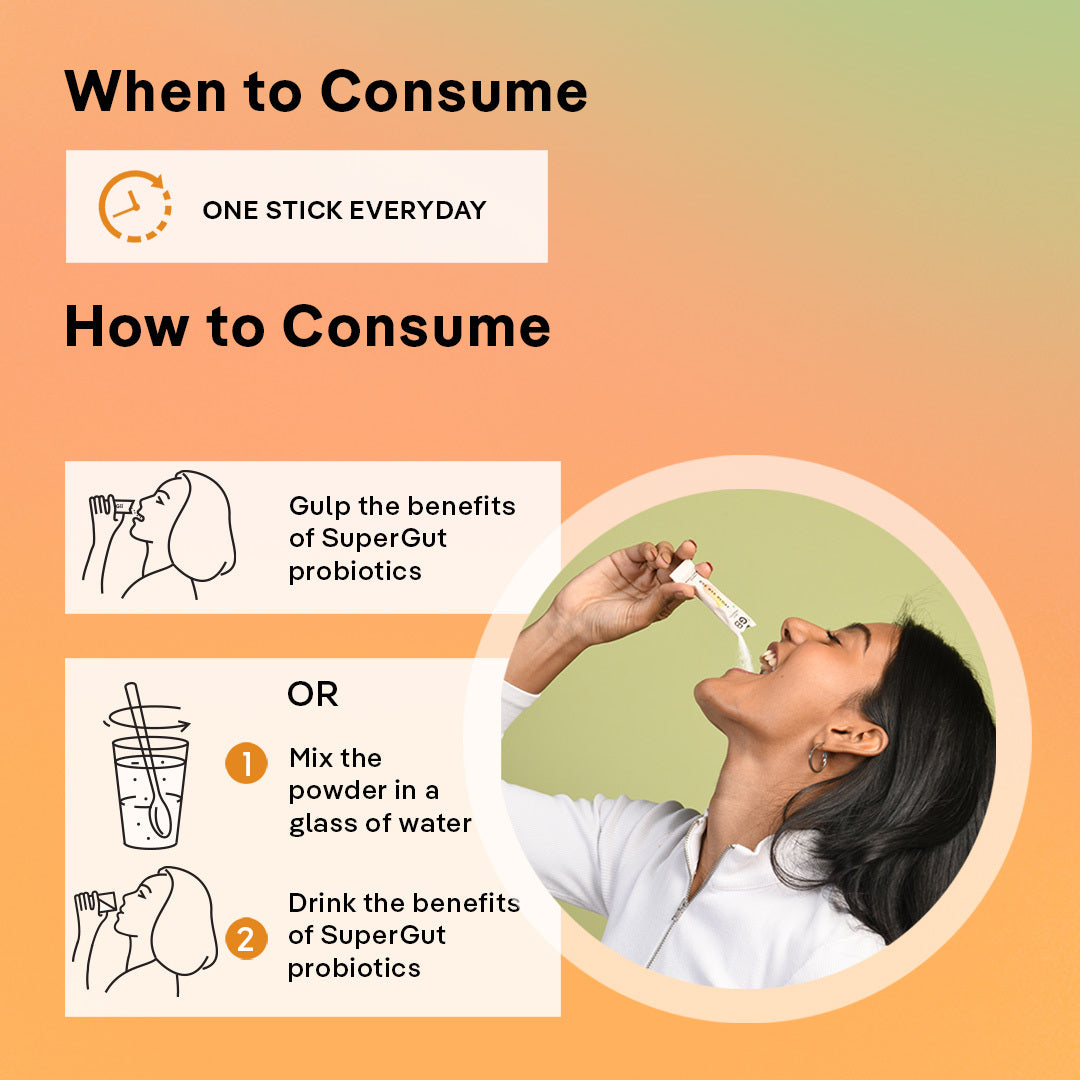 Super Tasty Tear & Gulp the benefits of SuperGut probiotics.