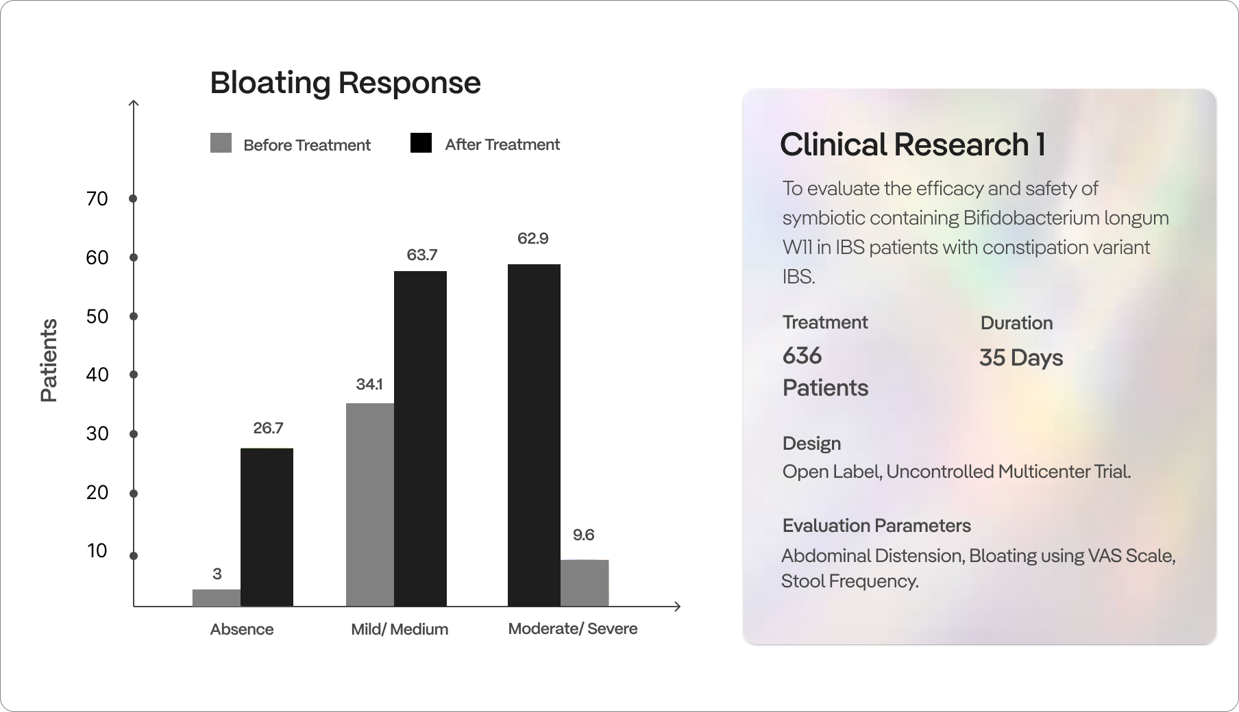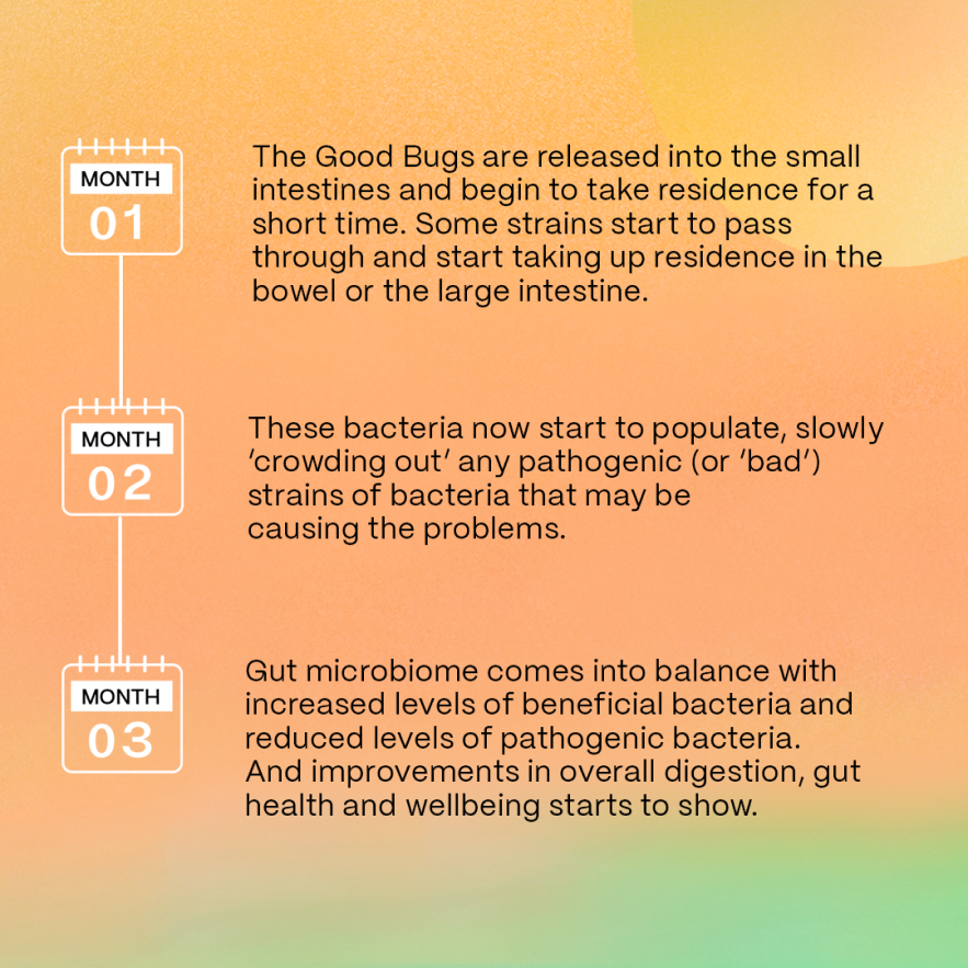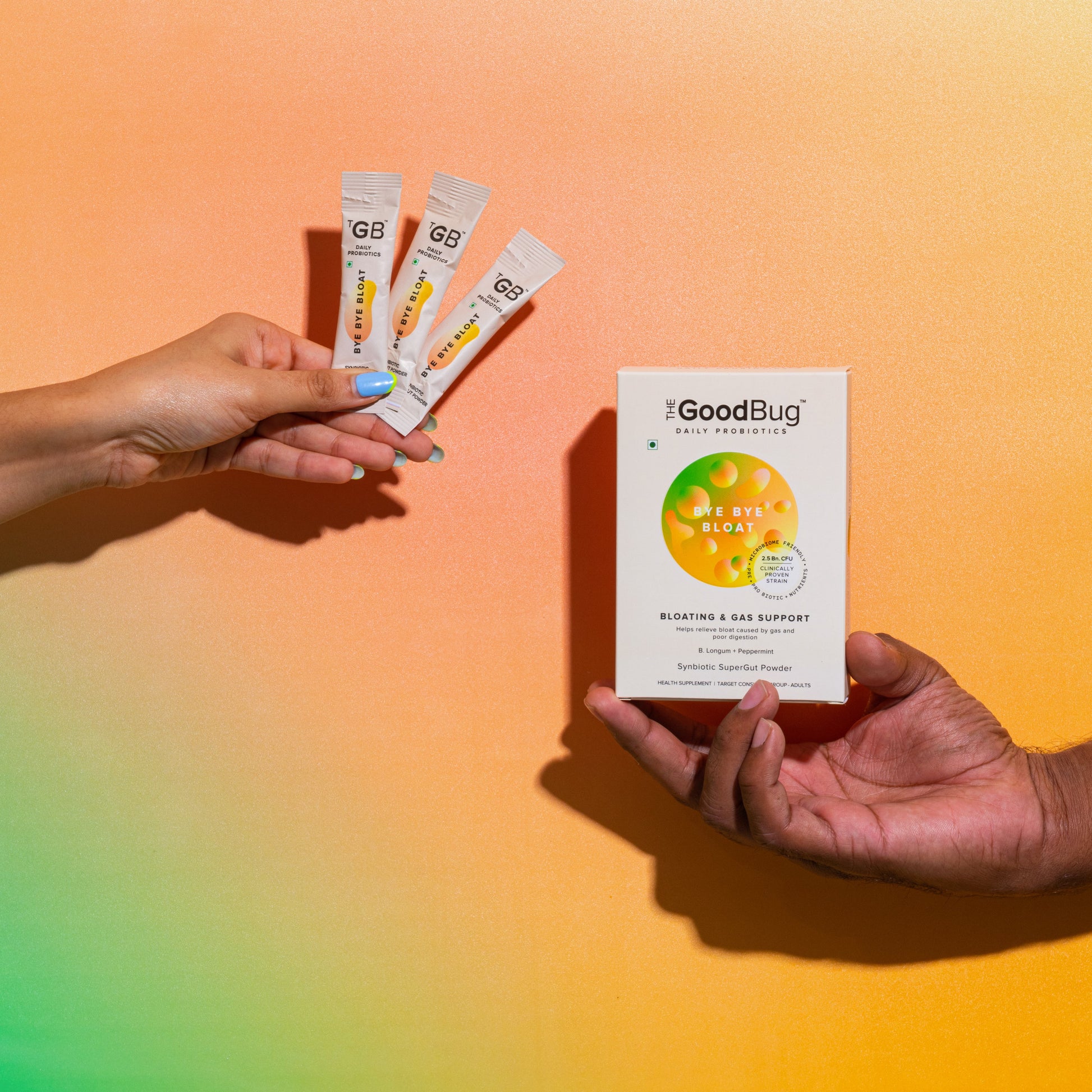 Partial bowel clearance or constipation makes it harder for the gas to pass, leaving you feeling bloated and uncomfortable, in such a case we recommend taking the Good Bugs Smooth Move.